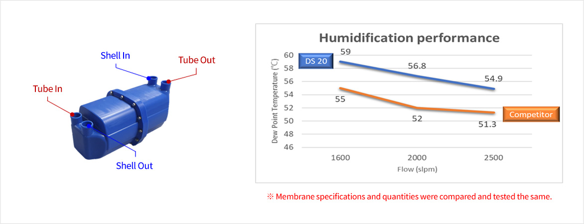그 결과 동일한 가습막을 사용하더라도 107% 높은 성능을 발휘하는 것을 검증하였습니다.