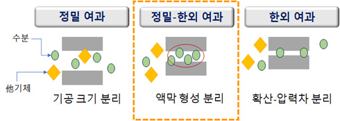 막 외표면의 다수의 유체 중에 수분만 선택적으로 흡수하여 이동합니다.